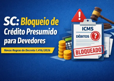 SC acaba com uso de crédito presumido do ICMS para quem tem débitos ou obrigações acessórias em atraso! Com o Decreto nº 1.416/2026, contribuintes com débitos ou omissões na DIME ou SPED Fiscal (EFD ICMS-IPI) não poderão fruir crédito presumido, e o envio do DCIP ficará bloqueado até a regularização da situação